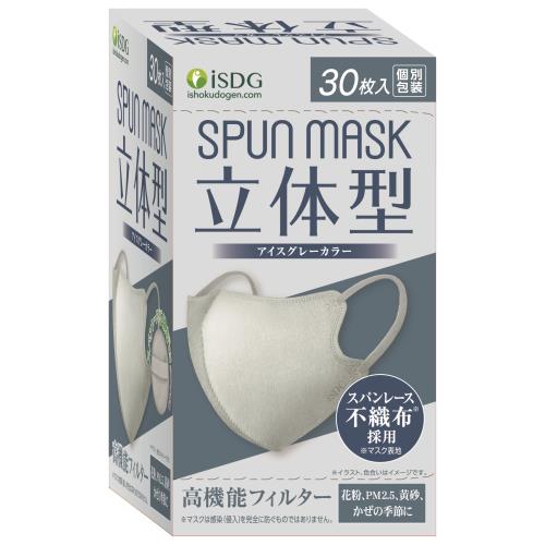 医食同源 SPUNMASK 立体型スパンレース不織布マスク アイスグレー 30枚