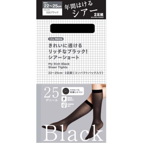 くらしWelcia きれいに透けるリッチなブラック!シアータイツショート 22-25cm 2足組