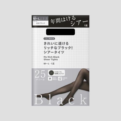 くらしWelcia きれいに透けるリッチなブラック!シアータイツ M-L 1足組