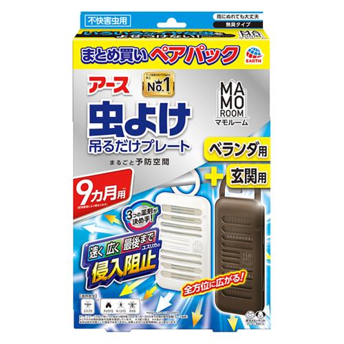 アース製薬 マモルーム 虫よけ吊るすだけプレート ベランダ用+玄関用 9ヵ月 ペアパック1セット