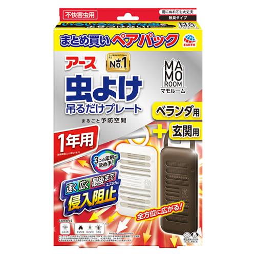 アース製薬 マモルーム 虫よけ吊るすだけプレート ベランダ用+玄関用 1年用 ペアパック1セット