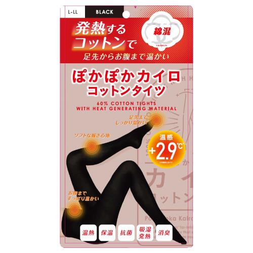 i.D ぽかぽかカイロ コットンタイツ 綿混 C04 BLACK(L-LL)