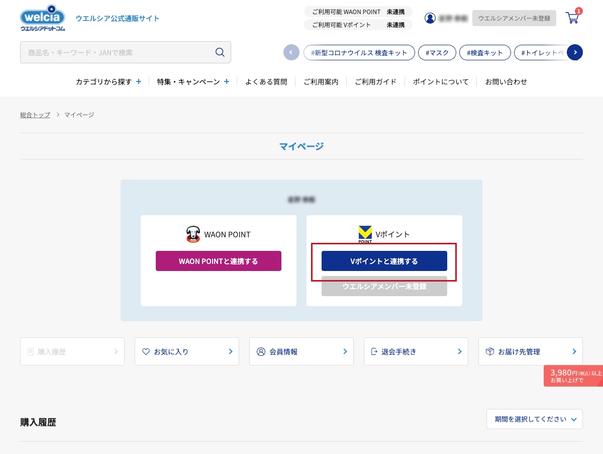 ウエルシアドットコムでお買上げいただくとVポイントが貯まります!