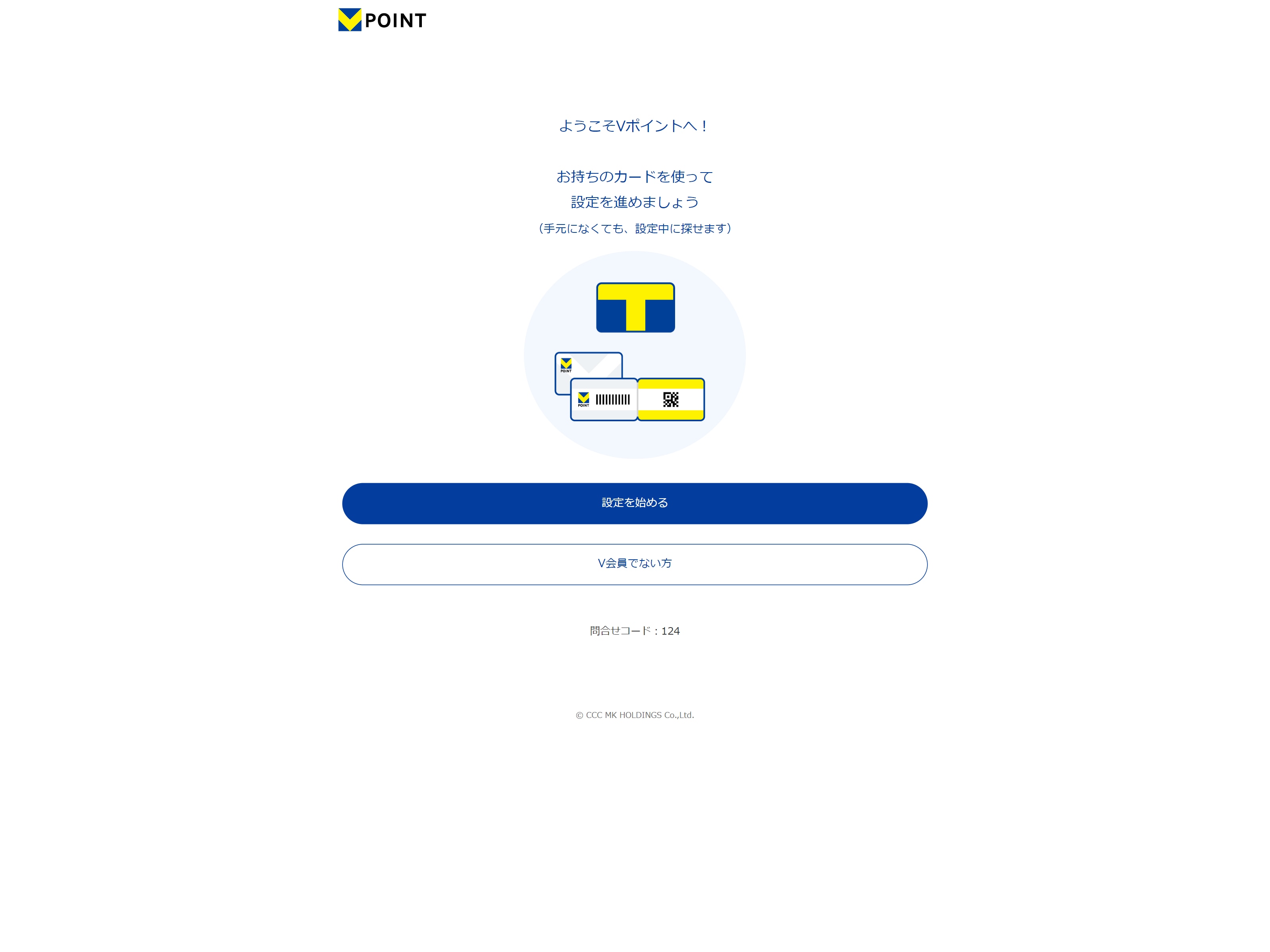 Vポイントが貯まるカードをお持ちな方は「設定を始める」、まだお持ちでない方は「V会員でない方」へお進みください。
