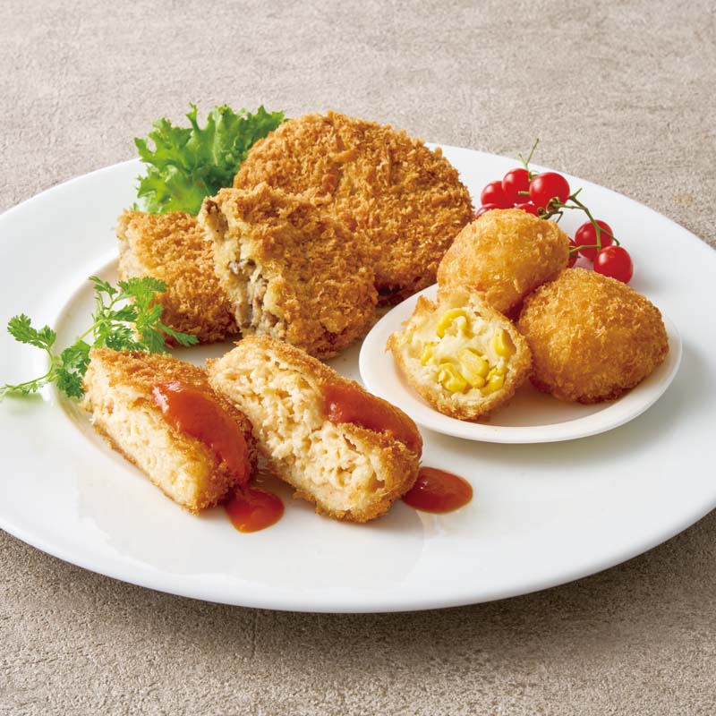 トマトソースで味わう蟹クリーム186g(2個入)・旨みに感動ビーフ180g(3個入)×各2、北海道産とうもろこしのプチクリーム180g(6個入)