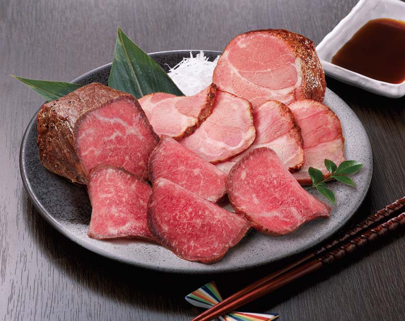 ローストビーフ(もも)210g、ローストポーク280g、ローストビーフソース和風ゆず風味60g