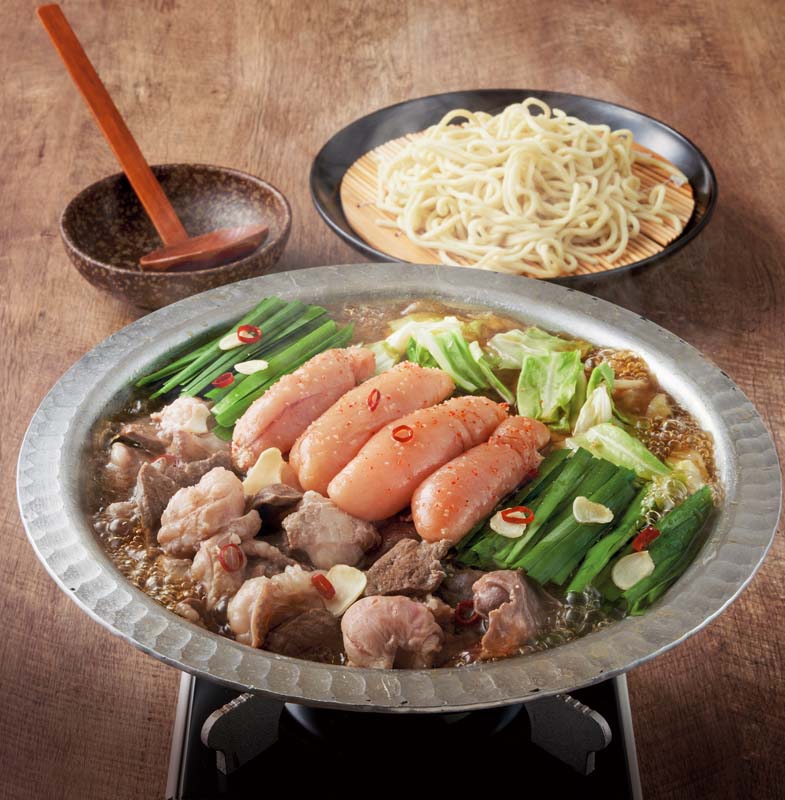約3~4人前/牛もつ350g、スープ(濃縮)200g、ちゃんぽん麺150g×2、にんにく2.5g、唐辛子0.5g、無着色辛子明太子150g