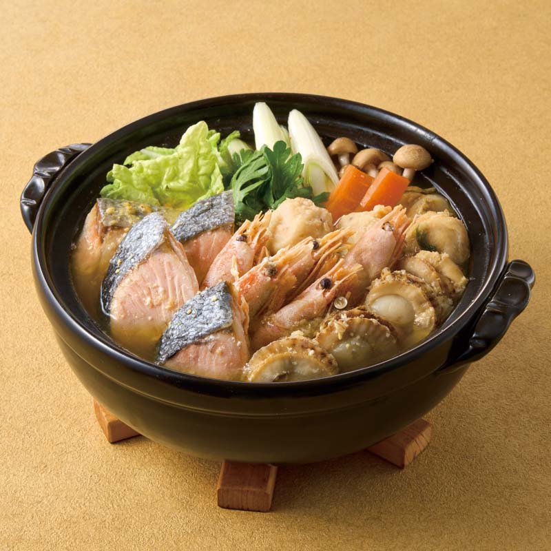 約3人前/鮭切身320g、えび・帆立・えびつみれ×各6、味噌鍋のつゆ50g×2