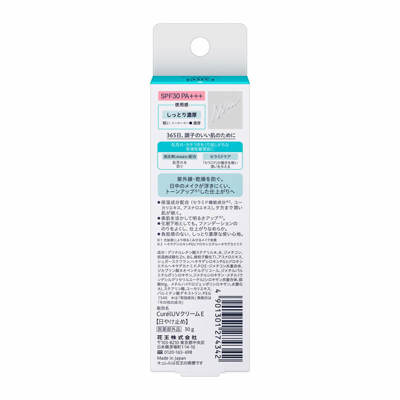紫外線・乾燥から肌を守る。消炎剤配合で肌荒れを防ぐ。セラミドケア※1できる肌きれい見せベース。●保湿成分(セラミド機能成分※2、ユーカリエキス、アスナロエキス)配合。夕方まで潤い続く。●素肌を活かしてトーンアップ(光拡散によるメイク効果)●化粧下地としても●負担感の無いしっとり濃厚な使い心地。※1セラミドの働きを補い潤いを与える※2ヘキサデシロキシPGヒドロキシエチルヘキサデカナミド【医薬部外品】
