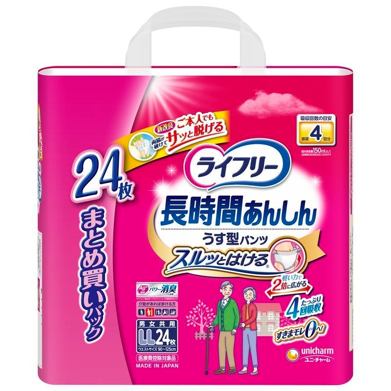 新機能引き込みラインで尿を素早く引き込んであふれモレを防ぎます。逆戻りが少なく、表面さらさら。おなかまわりにやわらかくフィットするからしめつけにくく、快適なはき心地。脚まわりのゴムの伸縮性が高いので、片手でするっとはけます。全面通気性シート採用。消臭加工。1枚入りの極小パック。