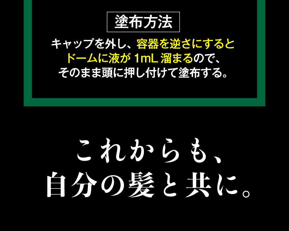 成人男性(20歳以上)が、1日2回、1回1mLを脱毛している頭皮に塗布してください。