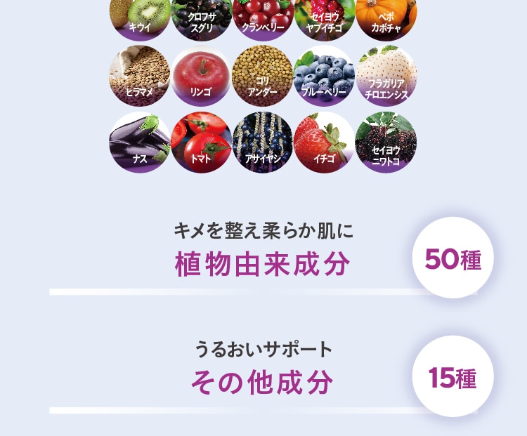 ハリ・うるおいを与える「5種の植物幹細胞エキス*1」を配合