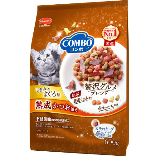 40g×4袋の食べきりサイズ。どこからでも切れるマジックカット採用。まぐろのおいしさたっぷりの4種粒に、カニチップ&まぐろ節の2種の素材が入った海の味わいメニュー。全成長段階猫用総合栄養食。