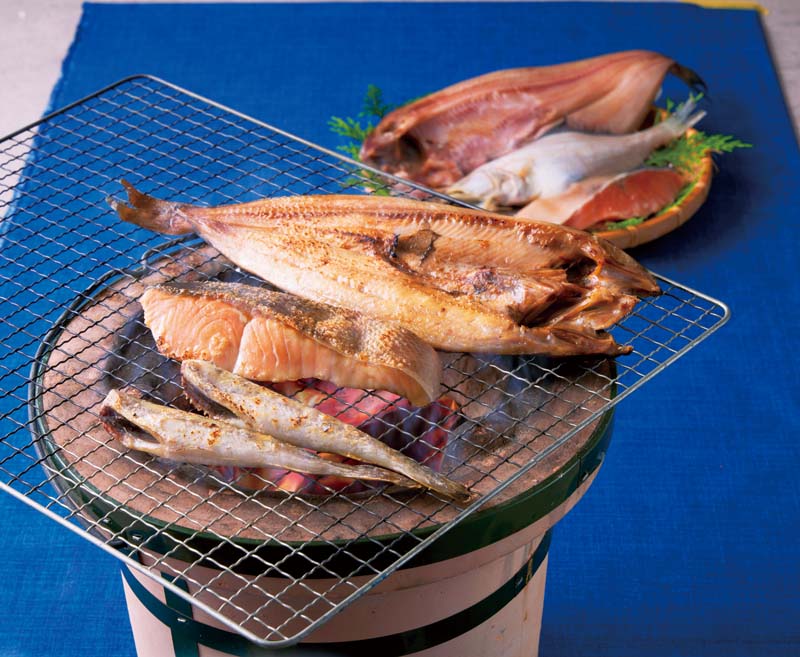 鮭うまみ干し切身80g×3、ほっけ一夜干し200g・宗八カレイ70g×各2、こまい一夜干し・姫たら各300g(北海道産原料を使用、北海道にて加工)