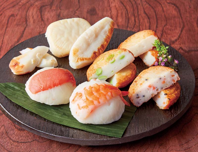 笹かまぼこ35g×4、真空笹かまぼこ(チーズ)20g×3、揚げ蒲鉾(枝豆・五目・玉ねぎ)各40g、おとうふ蒲鉾(柚子・プレーン)各50g、海鮮蒲鉾(えび・紅鮭)各50g