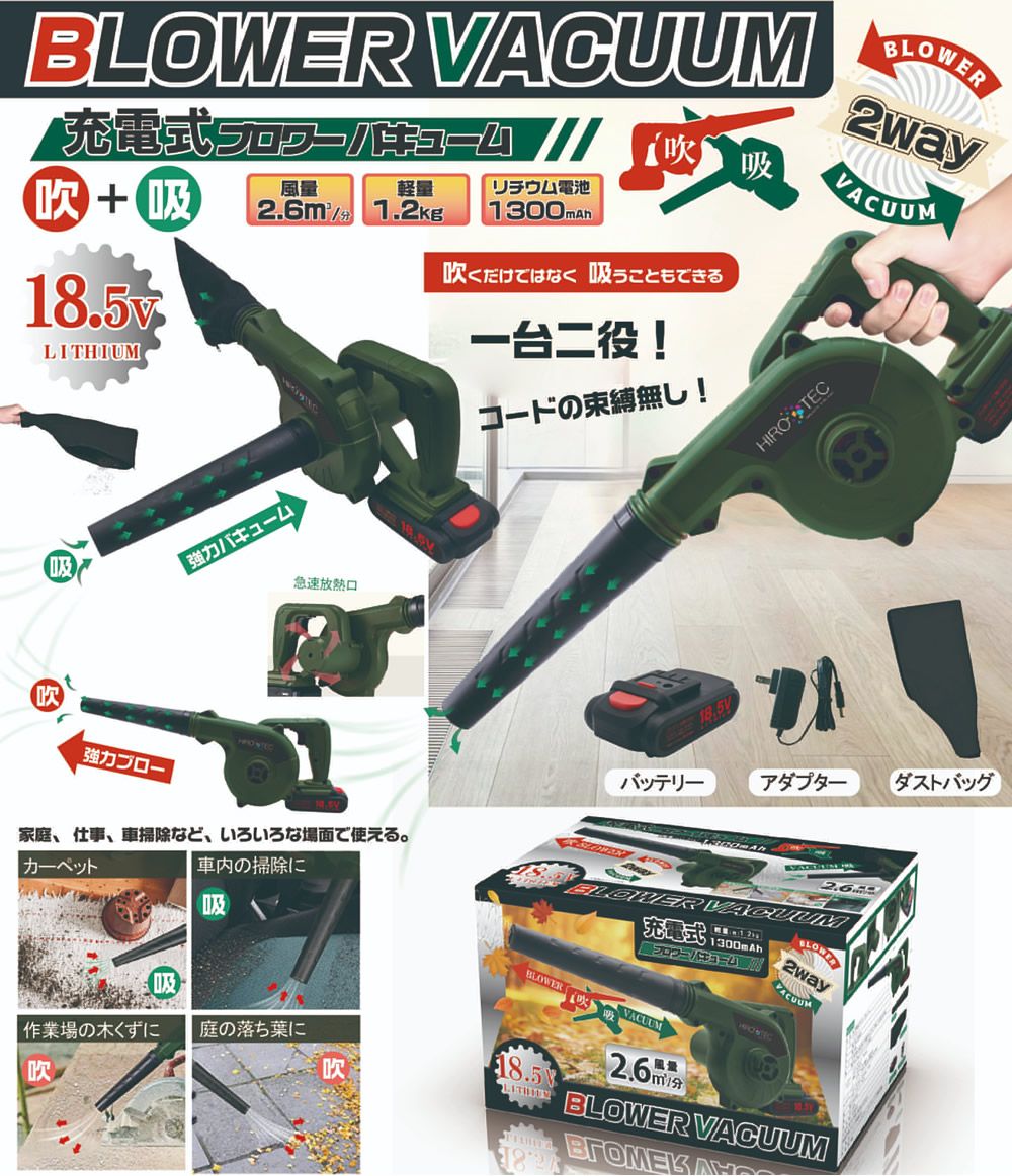 お庭の掃除や、玄関先、作業場での吹く掃除や、 車内やカーペットなど吸う掃除、どちらにも使えて便利!