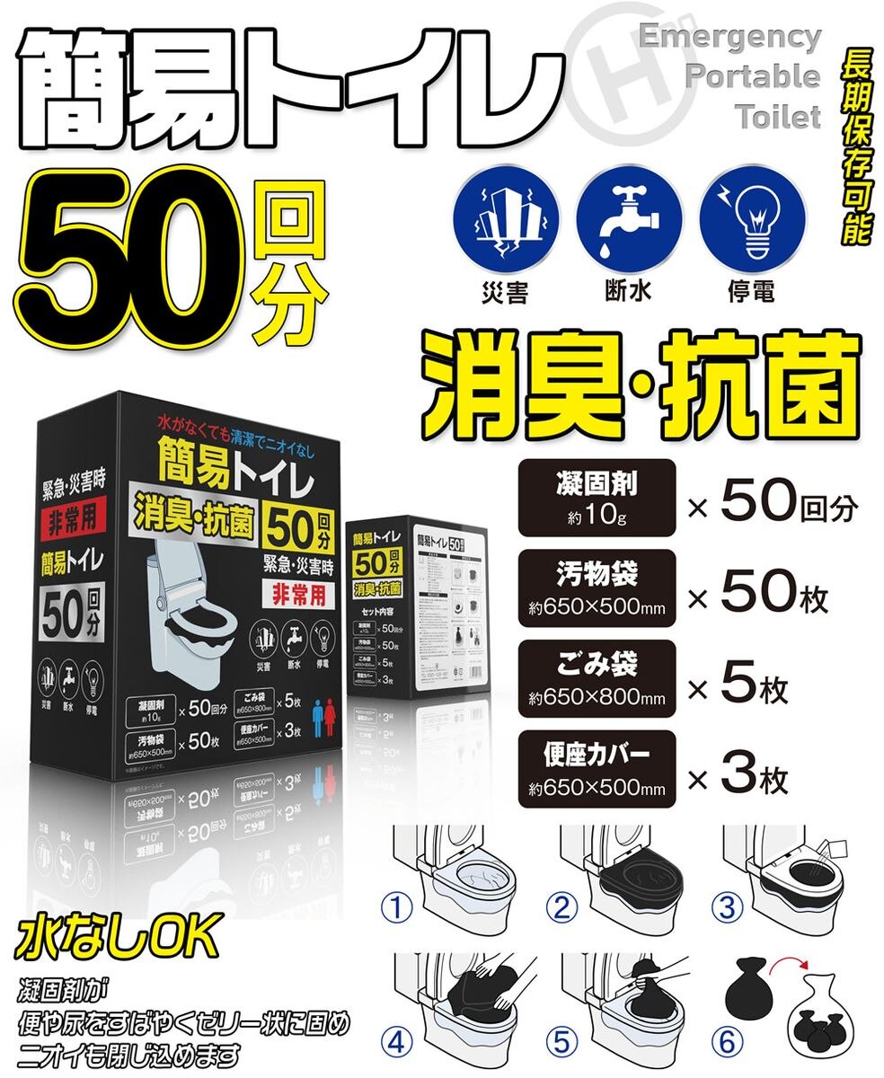 凝固剤が便や尿をすばやくゼリー状に固め、臭いも閉じ込めます。