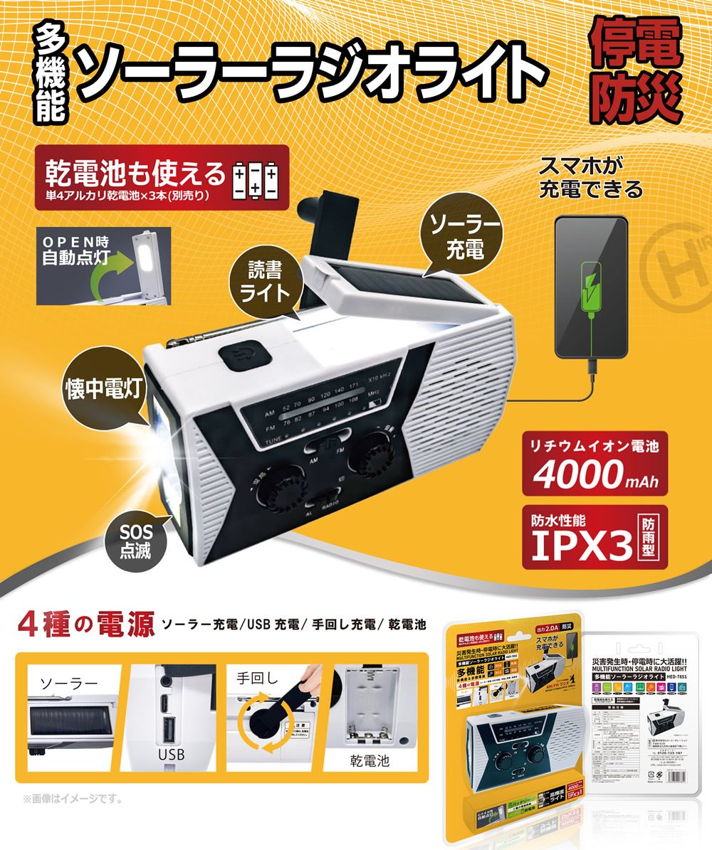 読書ライト/懐中電灯/SOS点滅&コール/スマホ充電/AMFMラジオ