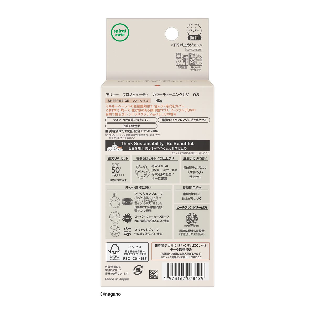色ムラ・毛穴 色補整ジェル ノーファンデUV*1 ちいかわ限定パッケージ *1ファンデーション未使用時でも自然なベースメイクに仕上がる日やけ止めのこと