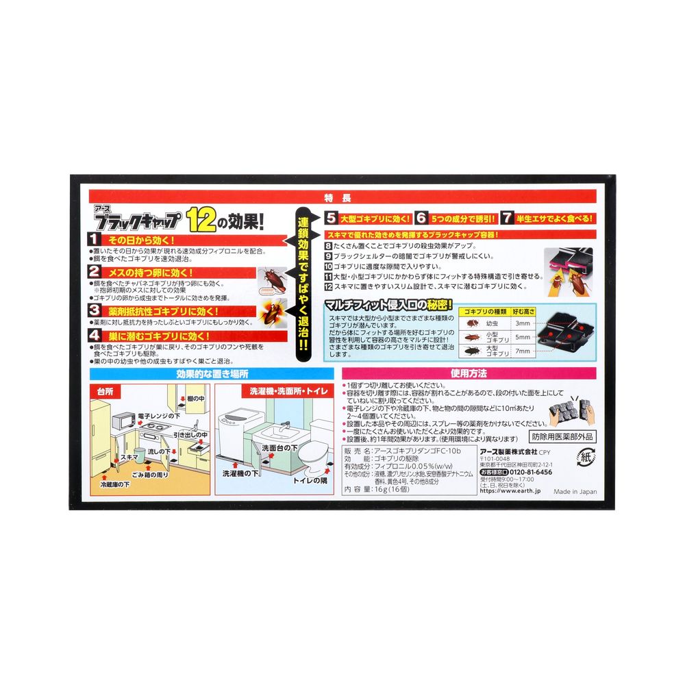 ・置いたその日から効果が現れる速効成分フィプロニルを配合。餌を食べたゴキブリを速効退治。