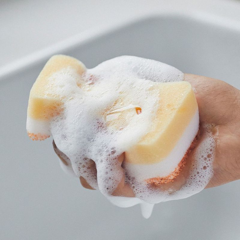 水切れがよく、耐久性に優れるウレタン素材を使用したキッチンスポンジ。目の粗い表面のスポンジで食器を傷つけずに汚れを落とします。抗菌。日本製。